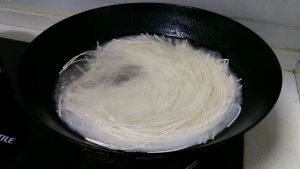 锅内加水,烧开后放入面条,一勺盐,顺时针搅动一下,防止粘锅,待面条变软后捞出,沥水装盘备用