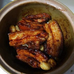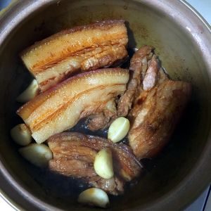这就是已经熟透了,香味四溢,这时候蒜瓣已经全部煮烂了味道全部进入肉里面,酱油、大蒜、肉的混合香味,闻到味道已经控制不住了