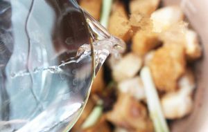倒入调味料,加半杯水盖盖子焖煮