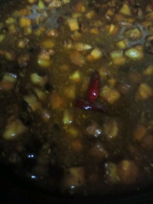放入大料煸炒,直到炒出听到嗤嗤声放入适量的料酒,陈醋少许(放陈醋第一可以去肉腻,第二可以加速使肉成熟)翻炒