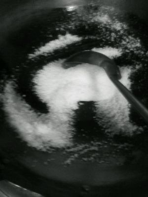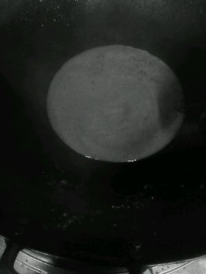 翻炒直到糖色冒沫(抱歉,本人做的时候手机拍照不知道怎么调成黑白色的,实际上本图的沫是金黄色的)