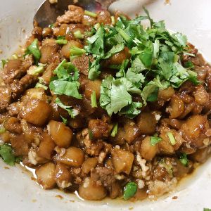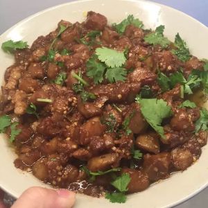 加入酱油,甜面酱,盐,鸡精,翻炒,出锅前再放入一些蒜末,最后加入香菜即可