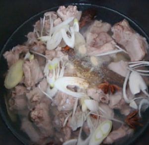 全部塞锅里,加水。感觉差不多的时候加料酒。煲好加盐。