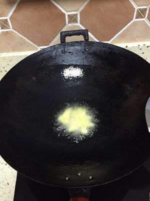 锅热倒少许油润锅(锅一定要将四周也润油),把多余的油倒出