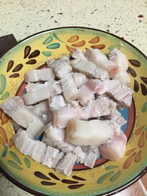 新鲜五花肉先用水煮熟焯一下,然后切小块