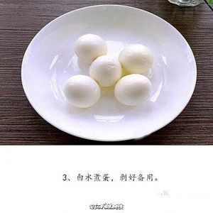 鸡蛋洗干净凉水下锅煮10分钟焖5分钟,煮好后放凉水浸泡10分钟,去皮备用