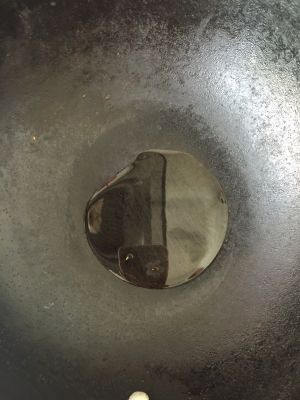 锅加油,葱花炝锅出香后加入孜然和少于辣椒粉。