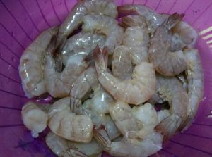 虾用清水洗净,剪去虾须,用牙签挑出虾线,用料酒拌匀备用。