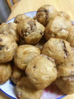 1、把以上原料除豆腐泡、糯米外,其它剁碎加盐、鸡精、五香粉、付乳半块、酱油、蚝油、排骨料或三鲜料拌匀,再加泡好沥干水的糯米拌匀成馅,静置半小时入味。 2、把豆腐泡边角撕开一小口,用手指把豆腐泡里面的瓢压实,把馅塞入内,尽量塞紧。 3、酿好的豆腐泡放入蒸锅蒸1小时,美味的酿豆腐泡可以开吃了!