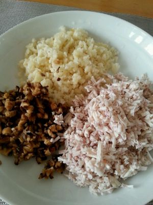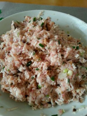 猪肉要选半肥瘦,因为香芋吸油,客家人传统的做法一定要有香芋和马蹄才是正宗的客家菜。剁好猪肉末后切些葱末连同香菇,香芋,马蹄拌上,调入适量盐,白糖,生抽,玉米淀粉拌均匀。