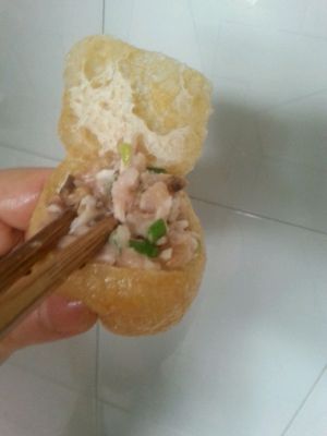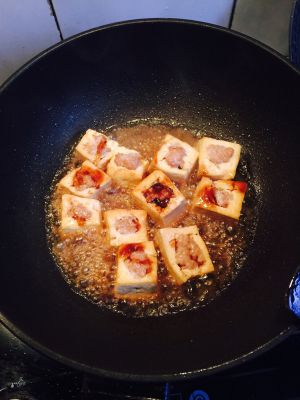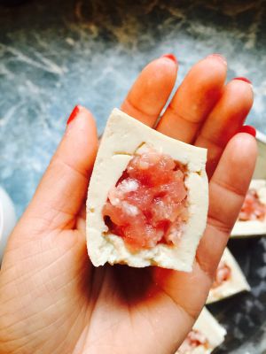 酿豆腐馅料尽量不要太咸,豆腐出锅后还可以沾辣酱或生抽吃。