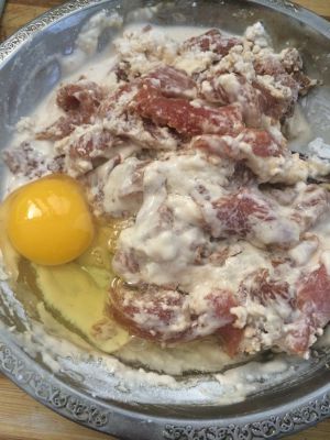 加入地瓜粉➕面粉➕鸡蛋拌匀