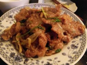 锅内留少许色拉油,放葱姜蒜炒出香味后,放调味汁,煮开后倒入炸好的肉片