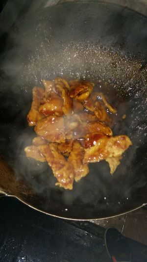 把肉放在锅里,水不要太多,不然锅包肉就不脆了,变成了肉段