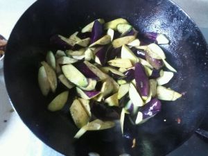 放入茄子块翻炒至茄子变软