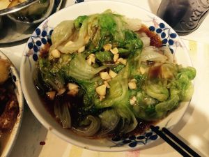 生菜洗净,沸水下锅,约10秒捞起沥干,装盘待用