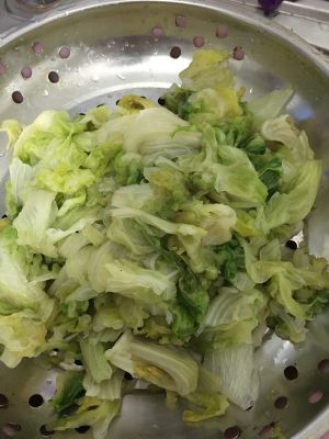 生菜洗净,放入热水中煮,可加油和食盐,熟度看个人喜好,过凉水,备用