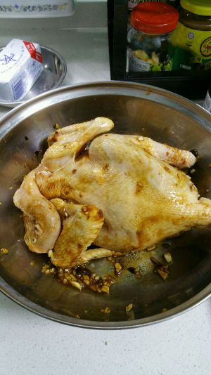 把鸡腿拆骨,切成块,加调料腌至少30分钟