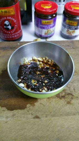 取小碗,加入全部调味料和姜末蒜蓉,搅拌均匀