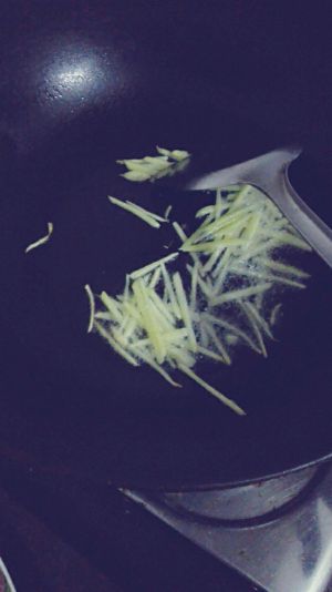 第三步:准备工作做好后锅内放油,烧到七分热放姜丝爆香