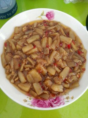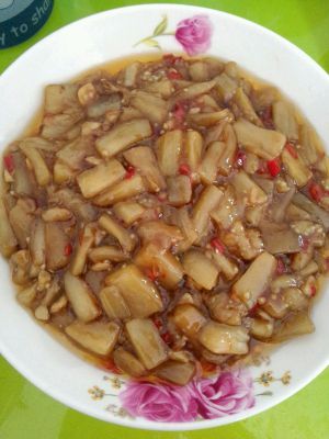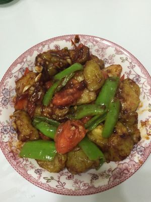油多些,辣椒蒜先放锅爆炒,再把茄子捞起来,放锅里爆炒,等快熟了拿碗放点地瓜粉倒点水和生抽进里伴下,倒锅里和茄子翻炒下盐就可以出锅啦