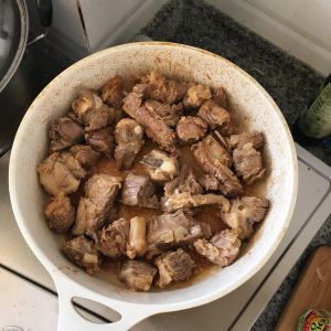 放入排骨,用中小火烧至汤汁快干时,加醋翻炒至收汁亮油,淋入少许香油翻匀就可以出锅了。这其间要注意火候,特别是最后时刻,因为汁黏稠,很容易炒糊