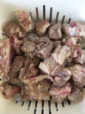 排骨斩小 过水焯一下 习惯在水里放将 捞出沥干