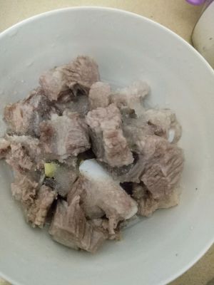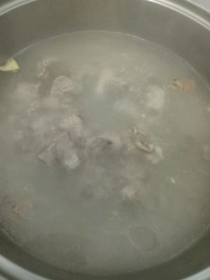 排骨先用冷水浸泡,去血水。。。然后在放入冷水锅中煮。。。待煮出血沫后讲排骨捞出,待用。。。
