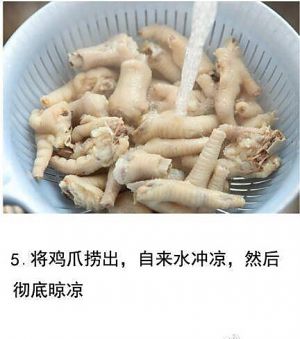 捞出控水,然后过一遍冰水后,再捞出。这样鸡爪会比较脆。