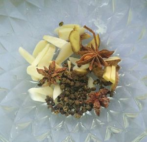倒入适量料酒,起到去腥提鲜的作用,然后放入准备好的姜片、葱头、蒜、八角进去煮;盖上盖子,煮3分钟左右,就差不多了。