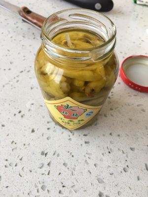 然后把鸡爪放在准备好的盆器中倒入泡椒,我买的一瓶不大,正好全放进去了,放适量糖盐调味还有白醋倒入150g,将准备好的凉白开倒入,封盖放冰箱静待两天就可享受美美的泡椒凤爪啦!