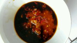 锅内加入蒜姜片爆香,加入甜面酱、豆瓣酱、豆豉、少许料酒、酱油、白砂糖、花椒面翻炒。