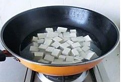 切好的豆腐块须用沸盐水(70℃左右)浸泡,才能保证豆腐质嫩并有效除去石膏味、豆腥味,并且在烧制过程中有楞有角,不易碎。