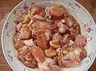 鸡腿剁成小块、葱切段、姜蒜切片。 放料酒、盐、酱油、白糖(一点点即可)、生姜粉、拌匀 鸡块,腌制30分钟入味(可以提前腌,时间充分就多腌些时间)。