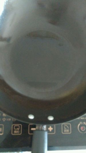锅中倒油,油差不多是炒菜勺一勺多一点。