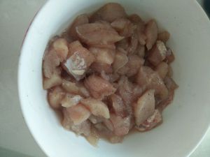 鸡胸肉切小丁加入料酒、老抽、耗油、生抽、盐、姜腌制30分钟。
