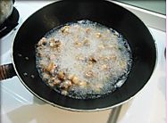 ▲等鸡肉变成金黄色时,就可以出锅备用了。