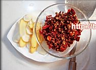 青椒、红椒洗净切片;板栗斩成块,加鸡粉、海天味极鲜酱油、料酒、生粉、盐腌片刻;