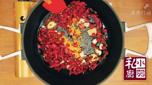 锅内放冷油,倒入干辣椒花椒炒香(全程小火)