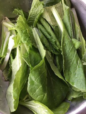 最后快熟加入小白菜,少许盐,鸡精,出锅