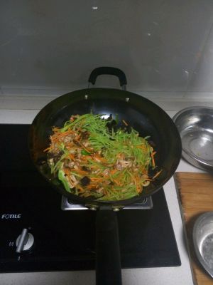 快速翻炒后加木耳丝,笋丝继续翻炒