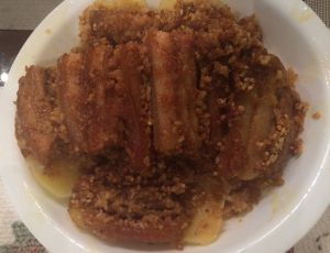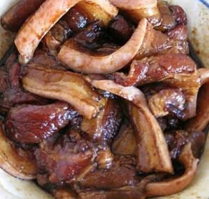 搅拌均均,腌制至少2小时以上,上笼屉蒸,四十分钟后,皮朝下,装碗,再蒸,20分钟后扣盘