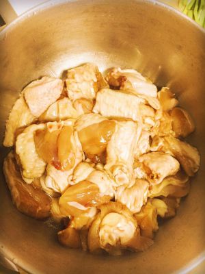 鸡腿连骨剁小块加盐料酒淀粉腌30分钟