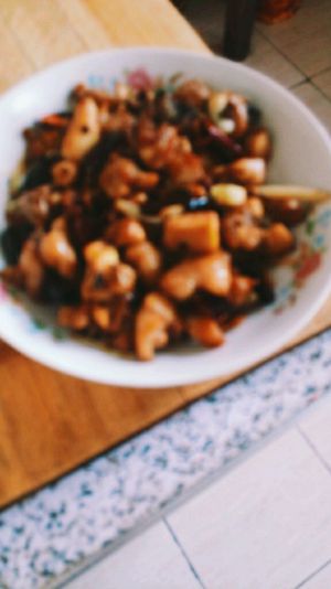 鸡肉炸得外焦里嫩时捞出来,放少许油将葱姜蒜放入炒香再倒入鸡肉翻炒即可