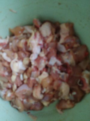 鸡腿去骨切小块,放盐、生抽、料酒、胡椒粉拌匀,腌制十分钟,放入一勺淀粉用手抓匀。