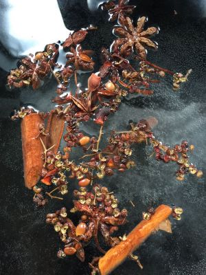 1、把材料(八角、花椒、姜片、盐、糖、半勺白酒、半勺白醋)先放入锅中煮沸!目的为了先把材料的味道全部煮出来,并且还可以把味道调好,这样一会煮凤爪的时候更容易入味。 2、我放白糖是为了中和一下所有材料的味道。