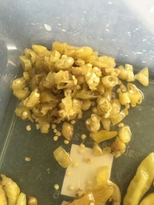 4、根据个人口味,可以选择性将泡椒切碎(适合爱吃辣的朋友哦),将大葱、生姜切成丝或片状。