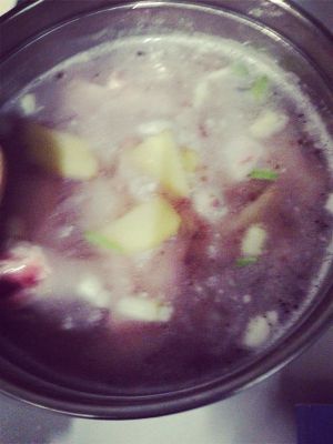去掉浮沫,煮的时候加一勺盐。这时可以调料汁。