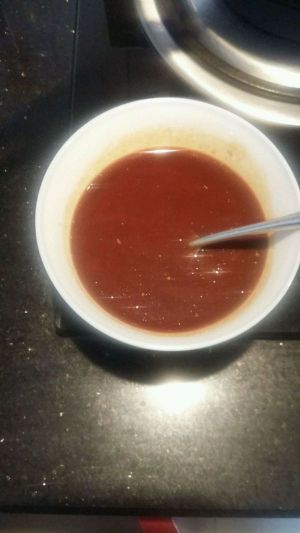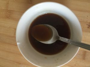 按比例将糖醋酱油蚝油水放入碗中搅匀,备用