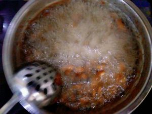 第四次炸如何颜色漂亮了吧。把鸡肉炸的有点焦焦的才好吃